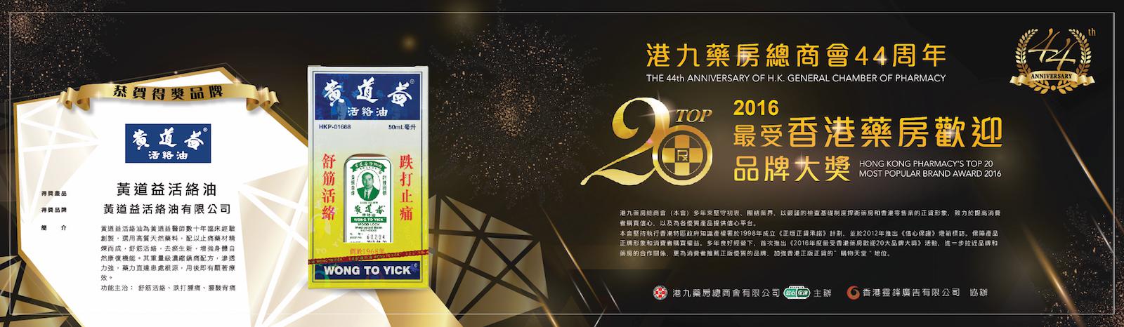 港九藥房總商會44周年2016年度最受香港藥房歡迎品牌大獎